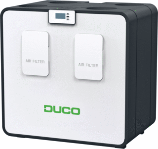 De Duco DucoBox Energy Comfort D325 combineert slimme ventilatie met compact ontwerp. Met een capaciteit tot 325 m³/h en geavanceerde CO₂- en vochtsturing past deze unit zich automatisch aan op jouw binnenklimaat. Dankzij softwarematige links/rechts-wisselbaarheid is hij flexibel inzetbaar zonder fysieke aanpassingen — perfect voor zowel nieuwbouw als renovatie.