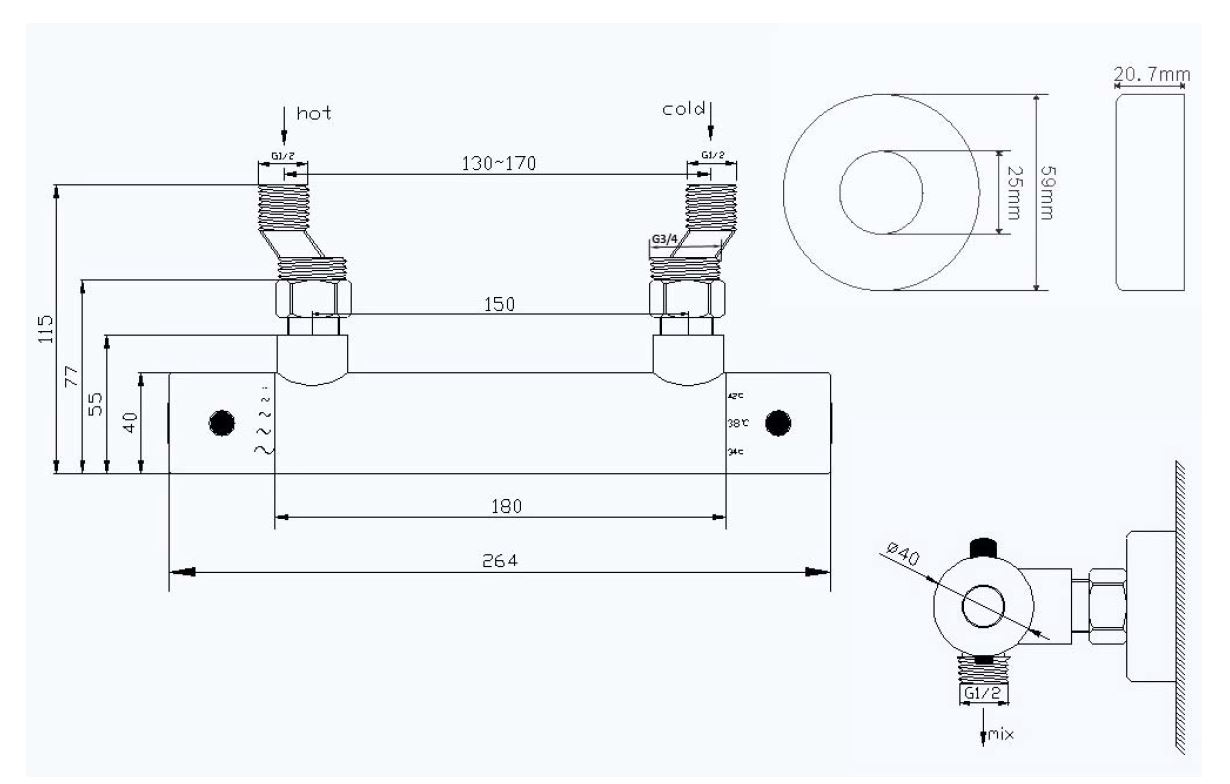 - Douchethermostaat met volledig messing (chroom finish) knoppen