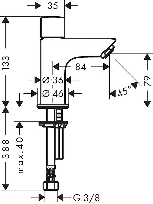 | Opbouwhoogte onderkant kraanmondstuk | 80 mm |
