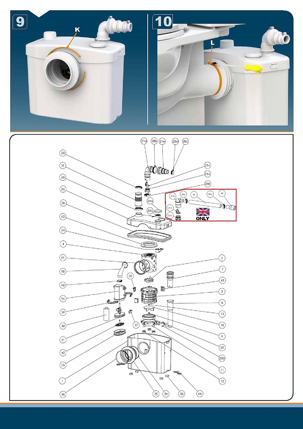 Bekijk hier alle Sanibroyeurs.| Opstelling achter toiletpot | J |