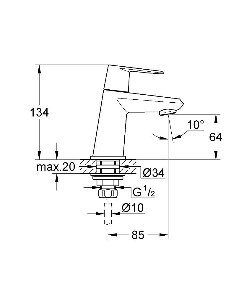 | Opbouwhoogte onderkant kraanmondstuk | 64 mm |