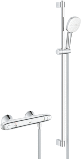 De Grohe Grohtherm 1000 New comfortset (34824005) is een complete Grohe douchemengkraan met thermostaat, 90 cm glijstang en handdouche met 2 straalsoorten. Deze Grohe Grohtherm 1000 is geschikt voor een standaard 150 mm aansluiting en wordt geleverd inclusief koppelingen. Ideaal als je een bestaande douchekraan wilt vervangen met extra comfort en veiligheid.