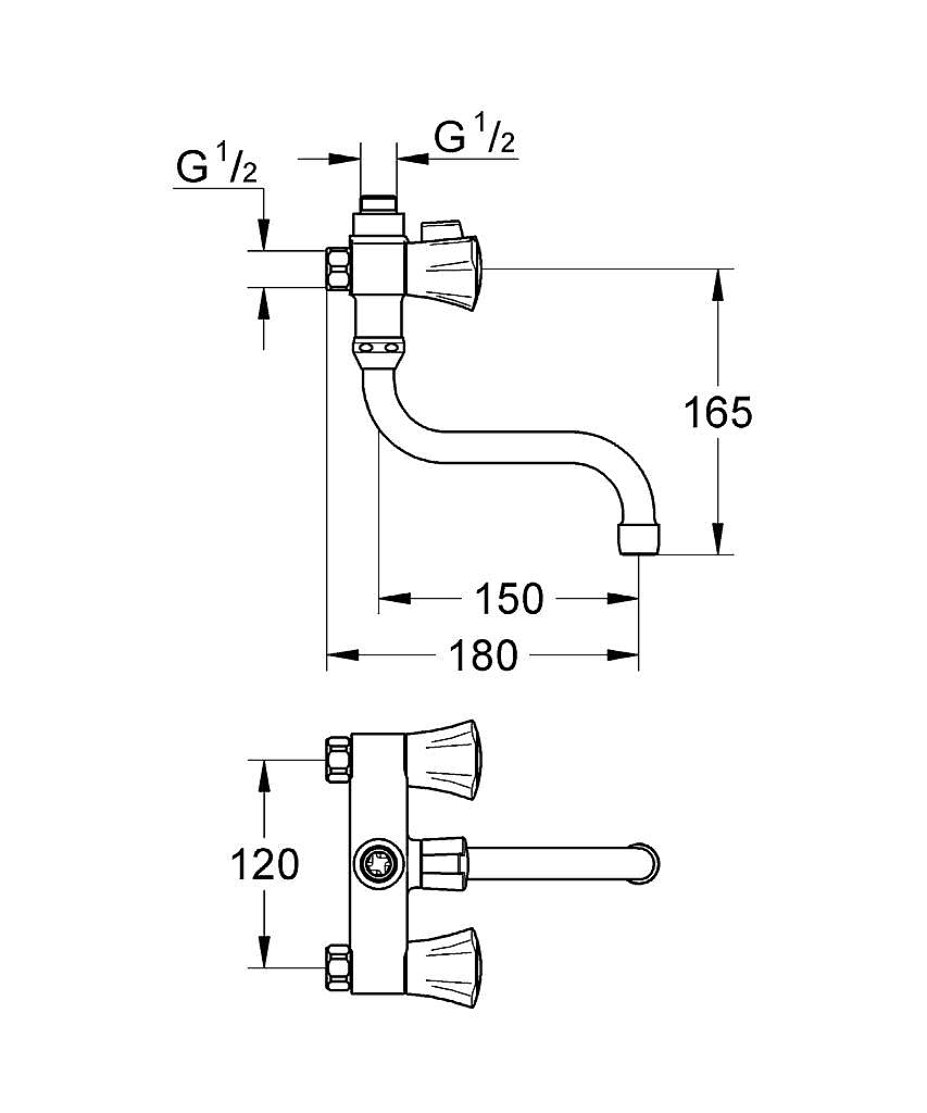 - Grohe douchekraan 12 cm hartafstand (120 mm)