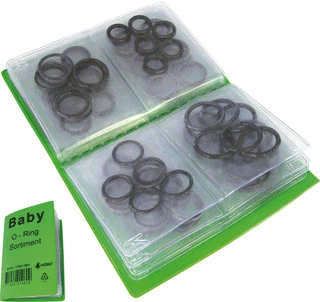 Gevuld met | BABY groen: boekje met O-ringen: |