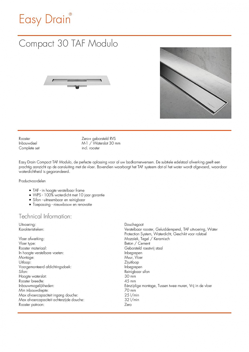 Bekijk hier alle Easydrain Compact TAF 30 zero/tegel douchegoten