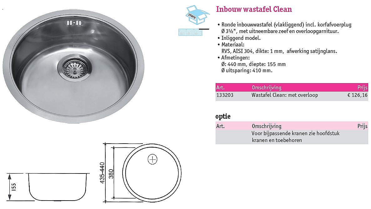Ronde inbouwwasbak met afvoerrooster Ø 3½”,