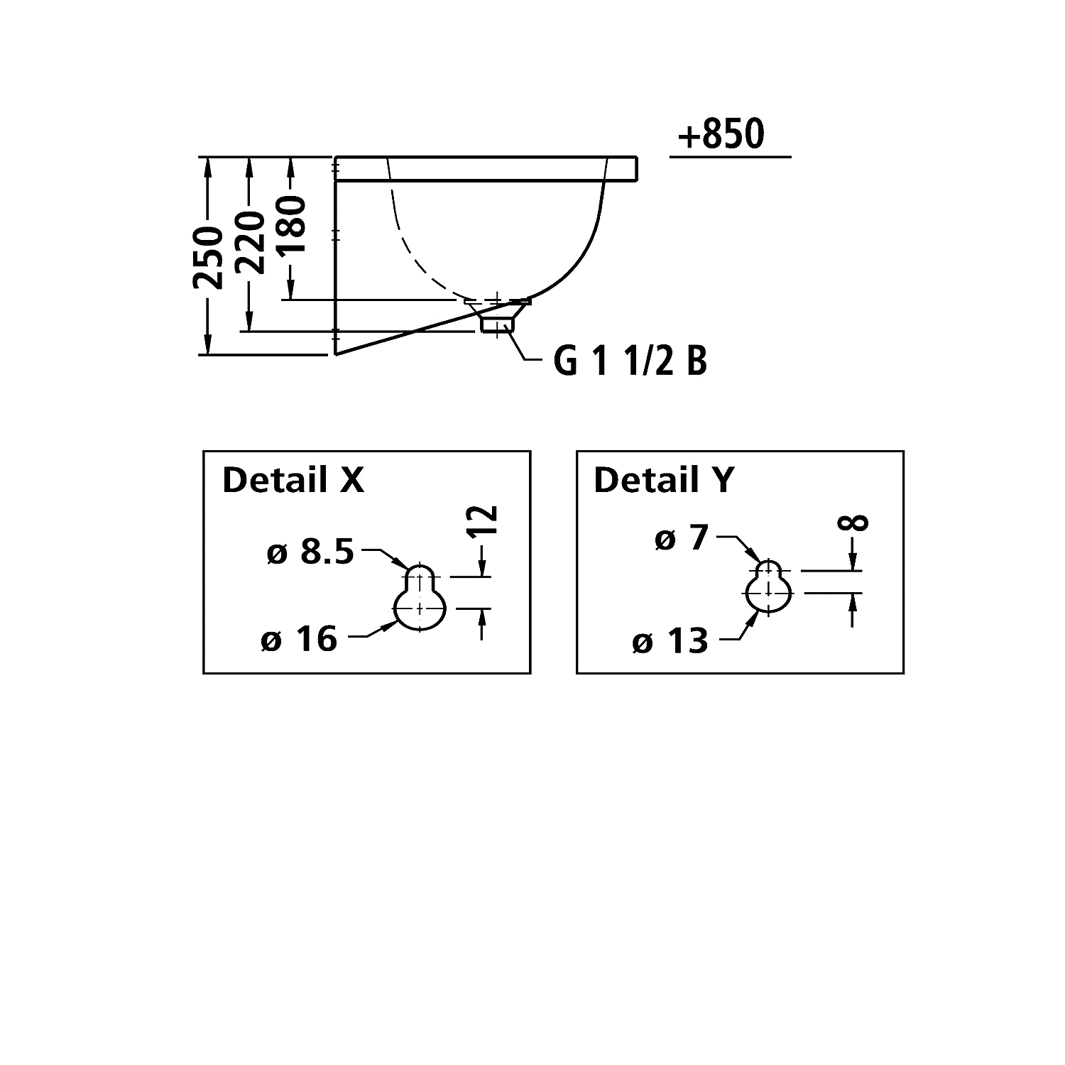- Wasgoot zonder spatwand; geleverd met muursteunen