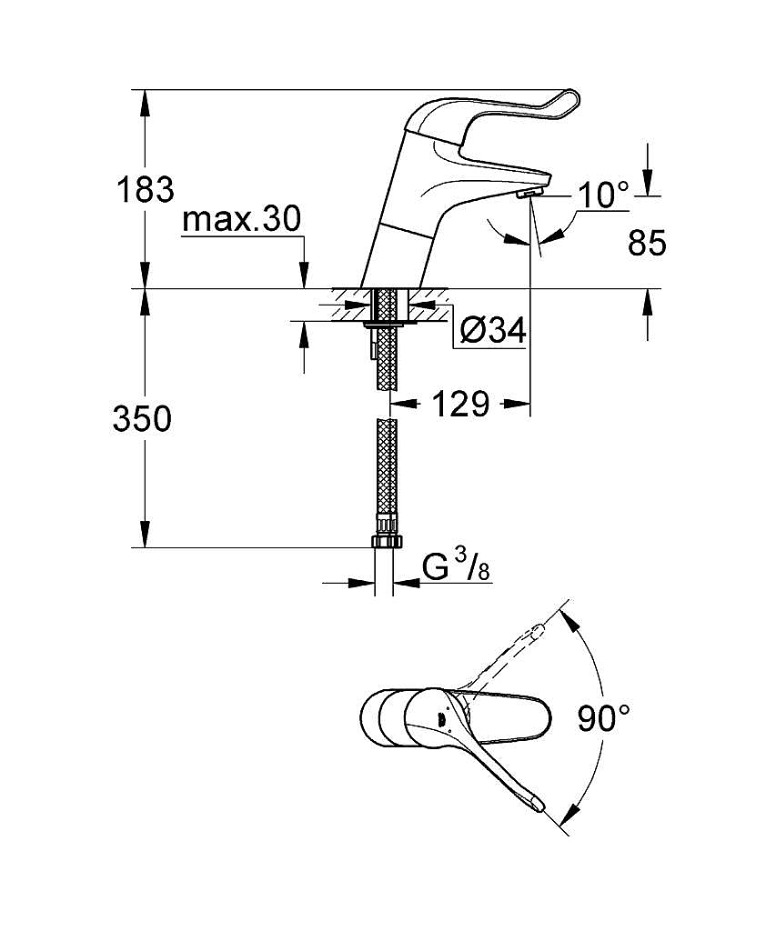 | Opbouwhoogte onderkant kraanmondstuk | 85 mm |