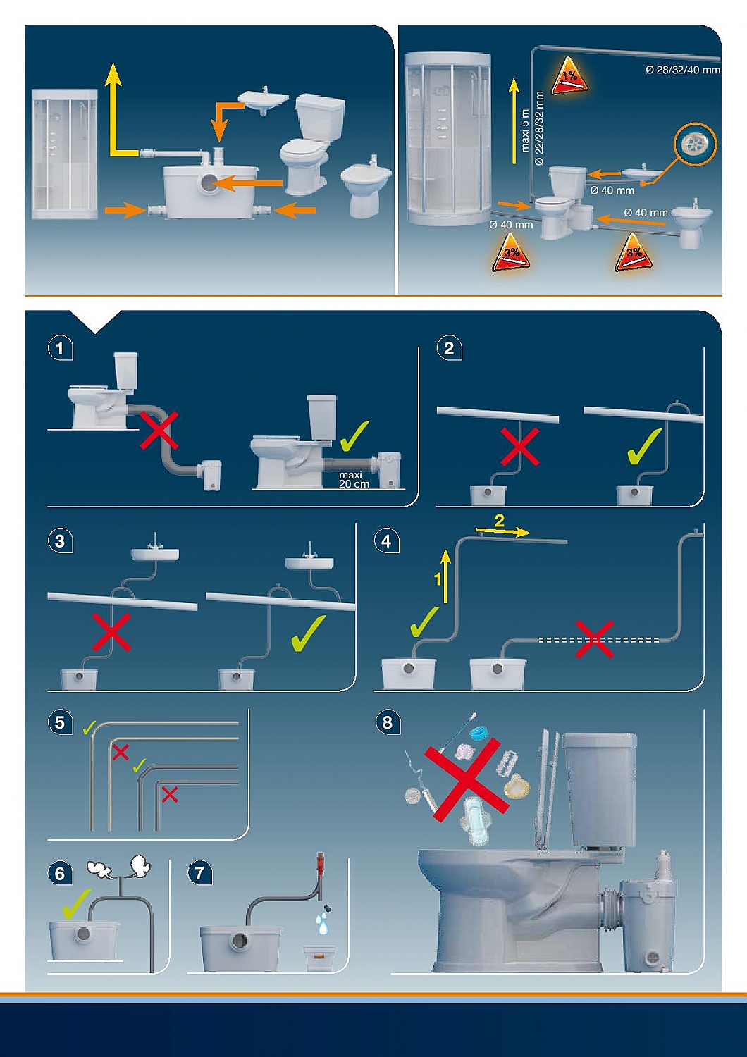 Die verbindingen die je kunt maken met de Saniacces 3 zijn de wc, fontein/wastafel, douche en bidet.Multifunctioneel dus!