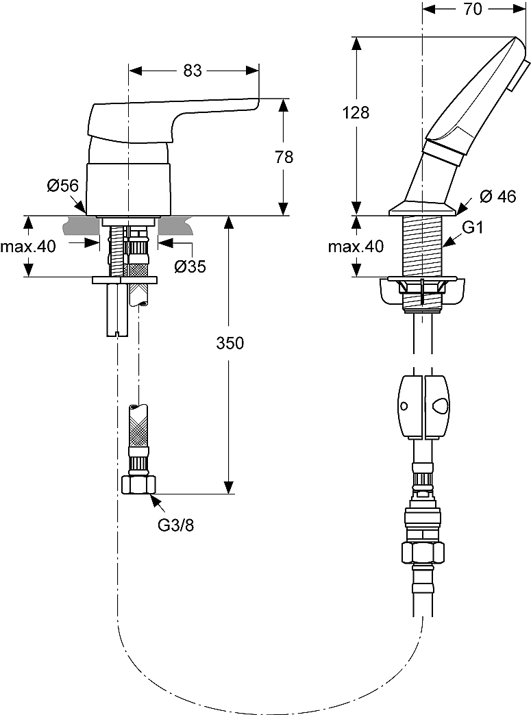 | Opbouwhoogte onderkant kraanmondstuk | 128 mm |