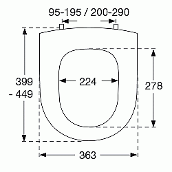 De Uni-Flex scharnieren maken het mogelijk om de closetzitting nauwkeurig uit te lijnen op het toilet. De verstelbare hartafstand van 95 tot 195 mm biedt veel montagevrijheid. Hierdoor past de zitting op verschillende D-vormige toiletpotten.