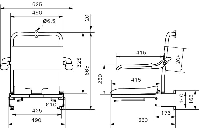 - zitting en eventueel armleggers kunnen na gebruik opgeklapt worden