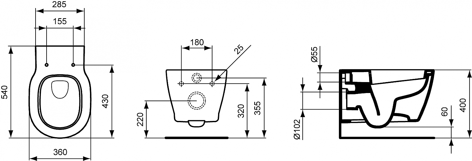 Met een diepte van circa 540 mm biedt dit Ideal Standard wandcloset prettig zitcomfort. Het formaat is geschikt voor de meeste standaard toiletruimtes.