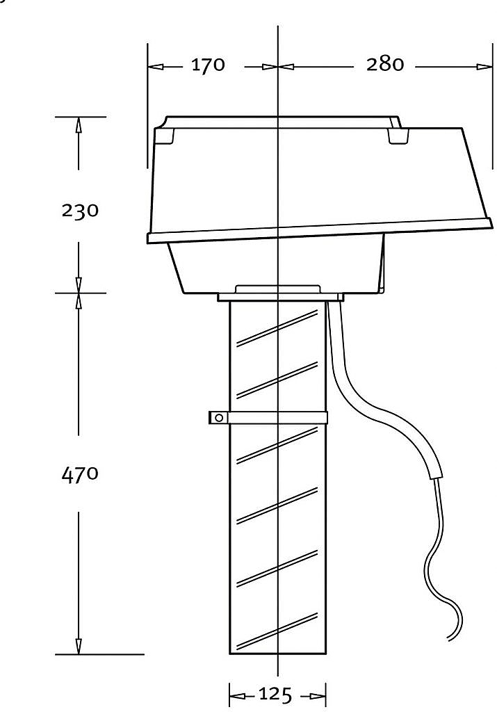 - Makkelijk aan te sluiten op de kanalen, doordat de unit is voorzien van een doorvoerkoker 125 mm, waarop onderdaks elektrisch kan worden aangesloten