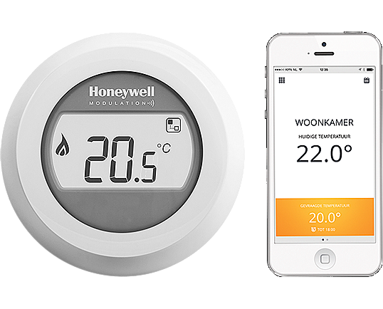 - Bediening via smartphone/tablet: Je kunt de thermostaat op afstand bedienen via smartphone of tablet met de Total Connect Comfort-app.