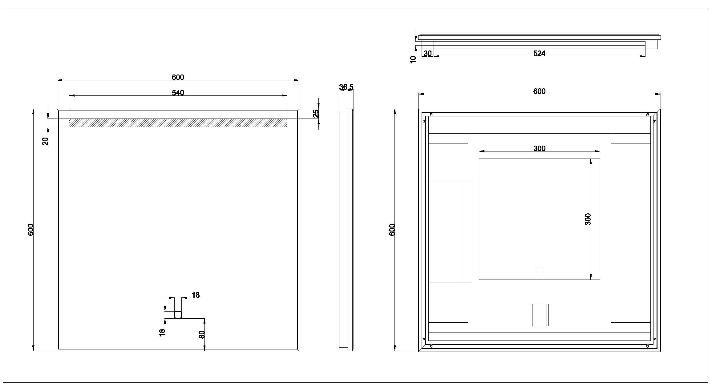 - Voorzien van één spiegelverwarmings-matje van 250x350mm ter voorkoming van condensvorming