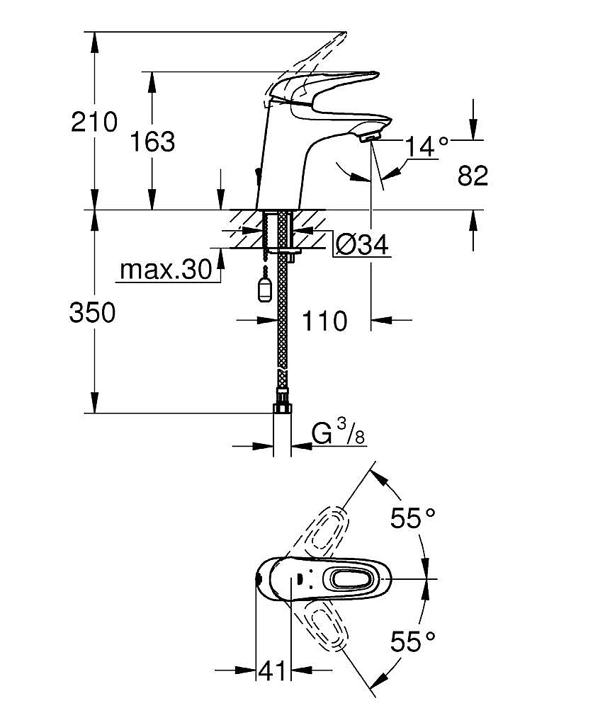 | Opbouwhoogte onderkant kraanmondstuk | 82 mm |