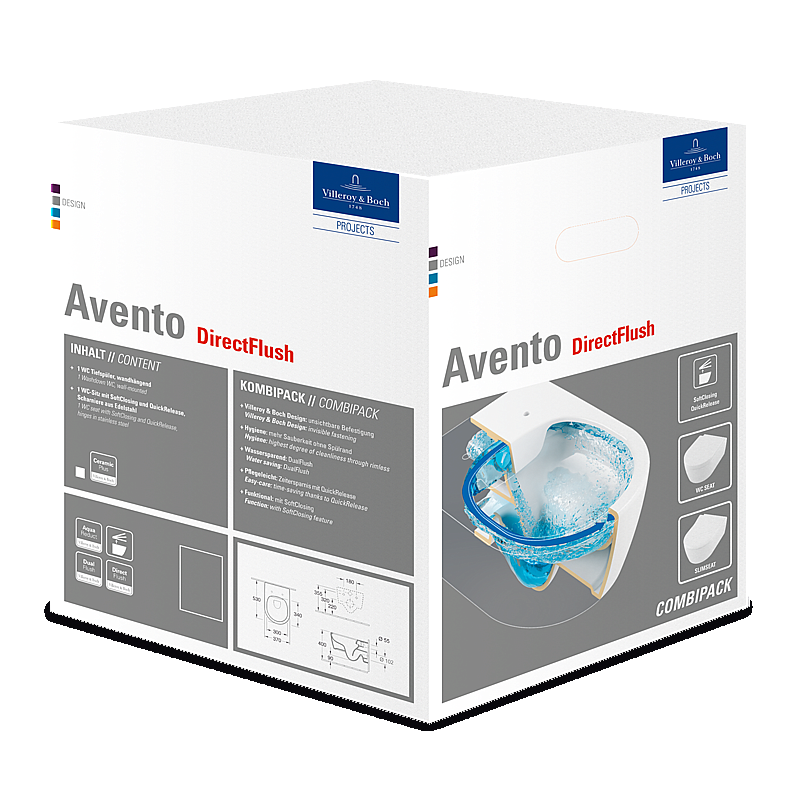 - Bestaat uit: diepspoelcloset DirectFlush, closetzitting met QuickRelease en SoftClosing scharnieren