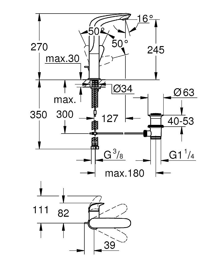 | Opbouwhoogte onderkant kraanmondstuk | 245 mm |