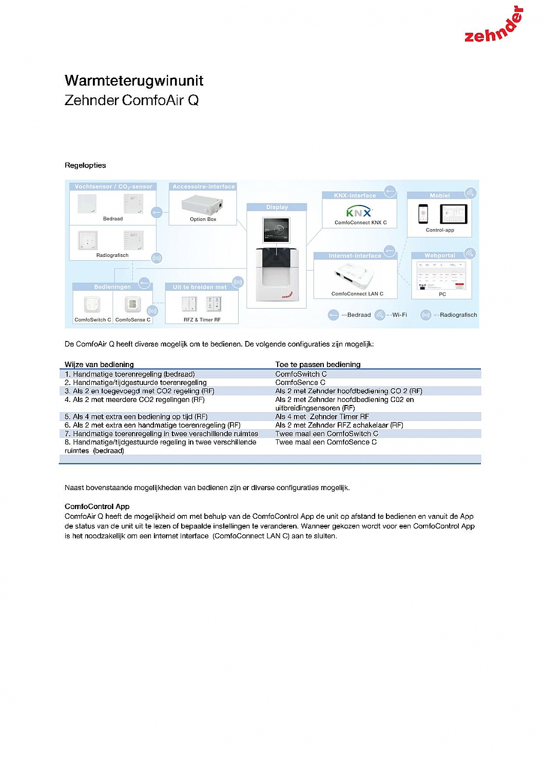 Bekijk ook onze Zehnder ComfoAir-serie of ontdek het complete assortiment van Zehnder voor ventilatie- en verwarmingsoplossingen.