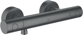 Veelzijdig, stijlvol en luxueus. De GROHE Grohtherm 1000 Cosmopolitan thermostatische douchemengkraan biedt geweldige prestaties voor de prijs – en is deel van onze nieuwe geborsteld Hard Graphite badcollectie. Eindelijk zijn die plotselinge momenten van ijskoud water in de douche een ding uit het verleden, dankzij de GROHE TurboStat. Deze innovatieve technologie levert direct de gewenste watertemperatuur en houdt het constant tijdens je douche, zelfs als de waterdruk verandert. Voor jouw eigen veiligheid kan de temperatuur van 38°C alleen verhoogd worden als de GROHE SafeStop-knop uitgezet wordt. Klinkt het milieu verbeteren en jouw waterrekening verlagen je goed in de oren? Geen probleem. GROHE EcoJoy zorgt dat jouw waterverbruik tot wel 50% verlaagt, zonder ook maar een druppel in te leveren op een voldoenende douche. Deze elegante en compacte thermostaat komt ook met ergonomische, metalen grepen die ongelofelijk comfortabel zijn om vast te pakken en te draaien. Het staat geweldig, biedt een heerlijke douche-ervaring en de prijs is fantastisch – een typisch GROHE-product!