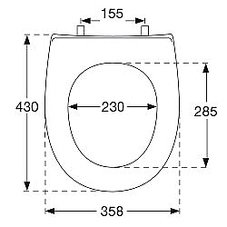 De closetzitting is geschikt voor universele toiletpotten met een hartafstand van 155 mm. Voor de installatie gebruik je doorgaans een steeksleutel of waterpomptang om de bevestiging stevig vast te zetten.