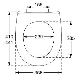 De closetzitting is geschikt voor universele toiletpotten. De hartafstand van de scharniergaten is 155 mm. Voor de installatie gebruik je doorgaans een steeksleutel of waterpomptang om de bevestiging vast te zetten. Dankzij de robuuste constructie blijft de zitting stevig op zijn plaats.