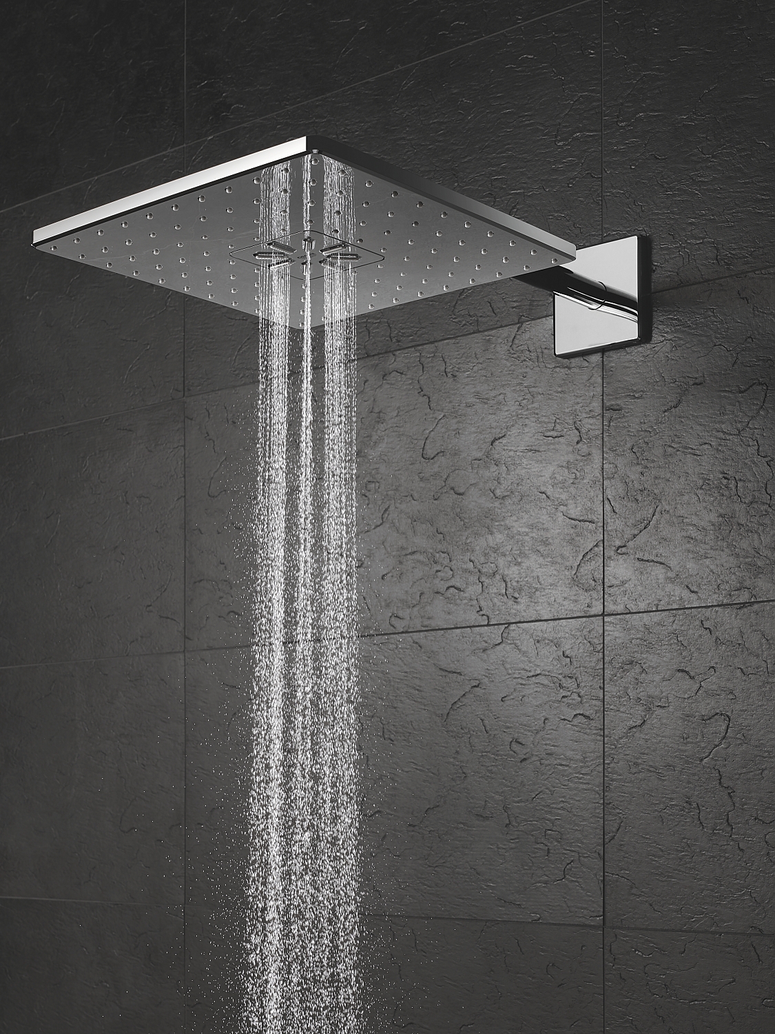 Voor die belangrijke douche om wakker te worden en de dag te starten en het reinigingsritueel dat je helpt te ontspannen is de GROHE Rainshower 310 SmartActive hoofddouche de slimme oplossing. De GROHE hoofddouche beschikt over twee straalsoorten die je apart of samen kunt gebruiken. Zo heb je de GROHE PureRain Spray die zacht is en je omhult als een milde regenbui. De nieuwe GROHE ActiveRain Spray is zeer stimulerend en krachtig genoeg om je haar uit te spoelen en om je een stimulerende hoofd-, nek- en rugmassage te geven. Je kunt de straal kiezen via een handige druk-en draaiknop op de apart verkrijgbare GROHE Grohtherm SmartControl thermostaatkraan of kies voor een reguliere GROHE Grohtherm thermostaat. De vierkante 310 mm GROHE hoofddouche zit op een 400 mm douchearm en biedt een geweldige dekking en comfort. Dankzij de GROHE DreamSpray technologie wordt het water gelijkmatig verdeeld over alle sproeigaatjes. De SpeedClean sproeigaatjes zijn zo ontworpen dat je kalk er zo af kunt vegen en de duurzame, maar glanzende StarLight chroomlaag zorgt ervoor dat de hoofddouche er altijd als nieuw uit blijft zien. Voor de veiligheid leidt de super geïsoleerde Inner WaterGuide heet water direct weg van het oppervlak om te voorkomen dat deze te heet wordt, waardoor de chroomafwerking nog langer mee gaat. Voor dit product is de GROHE Rainshower inbouwbox 26484000 (met waterbesparende GROHE EcoJoy functie) of 26483000 (zonder GROHE EcoJoy) vereist. Deze is apart verkrijgbaar.Kenmerken Grohe Rainshower 310 SmartActive Cube Hoofddoucheset