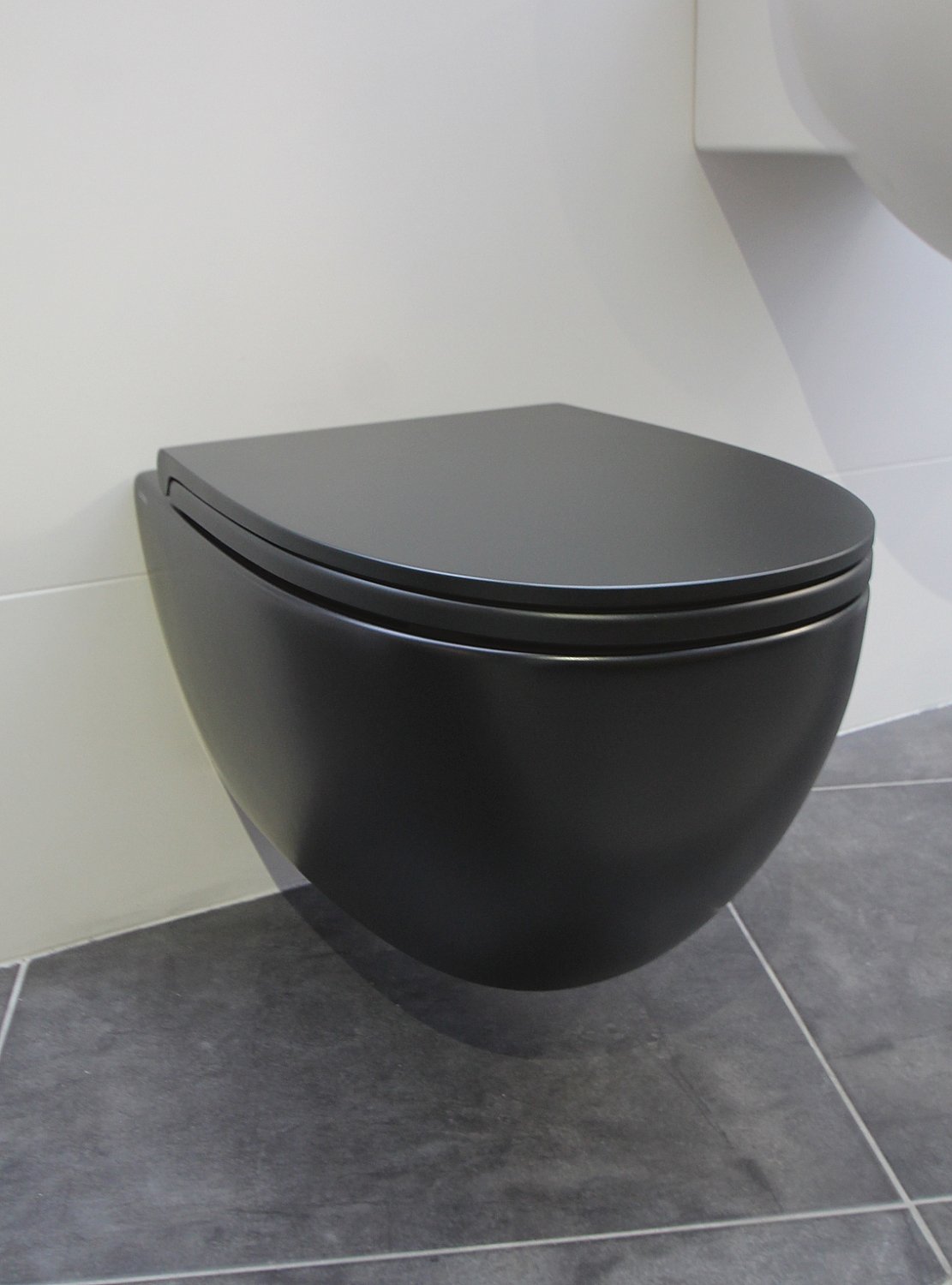 Wit is ook maar wit natuurlijk! Waarom niet een matzwart wandcloset? Zwart is geheel de trend en Globo heeft een heel mooi wandcloset van de serie 4All in matzwart uitgevoerd. Dit Globo 4All wandcloset kun je toepassen in normale toiletruimtes of badkamers. De diepte van het wandcloset is 54cm en is daarmee iets ondieper dan een normaal wandcloset (56m).