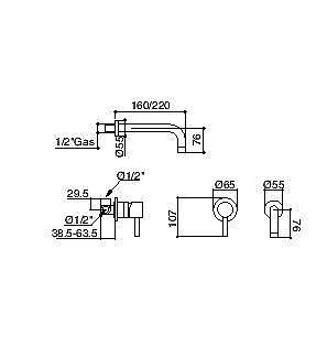 Bongio T mix inbouw wastafelkraan 16cm mat zwart BO32538NE16