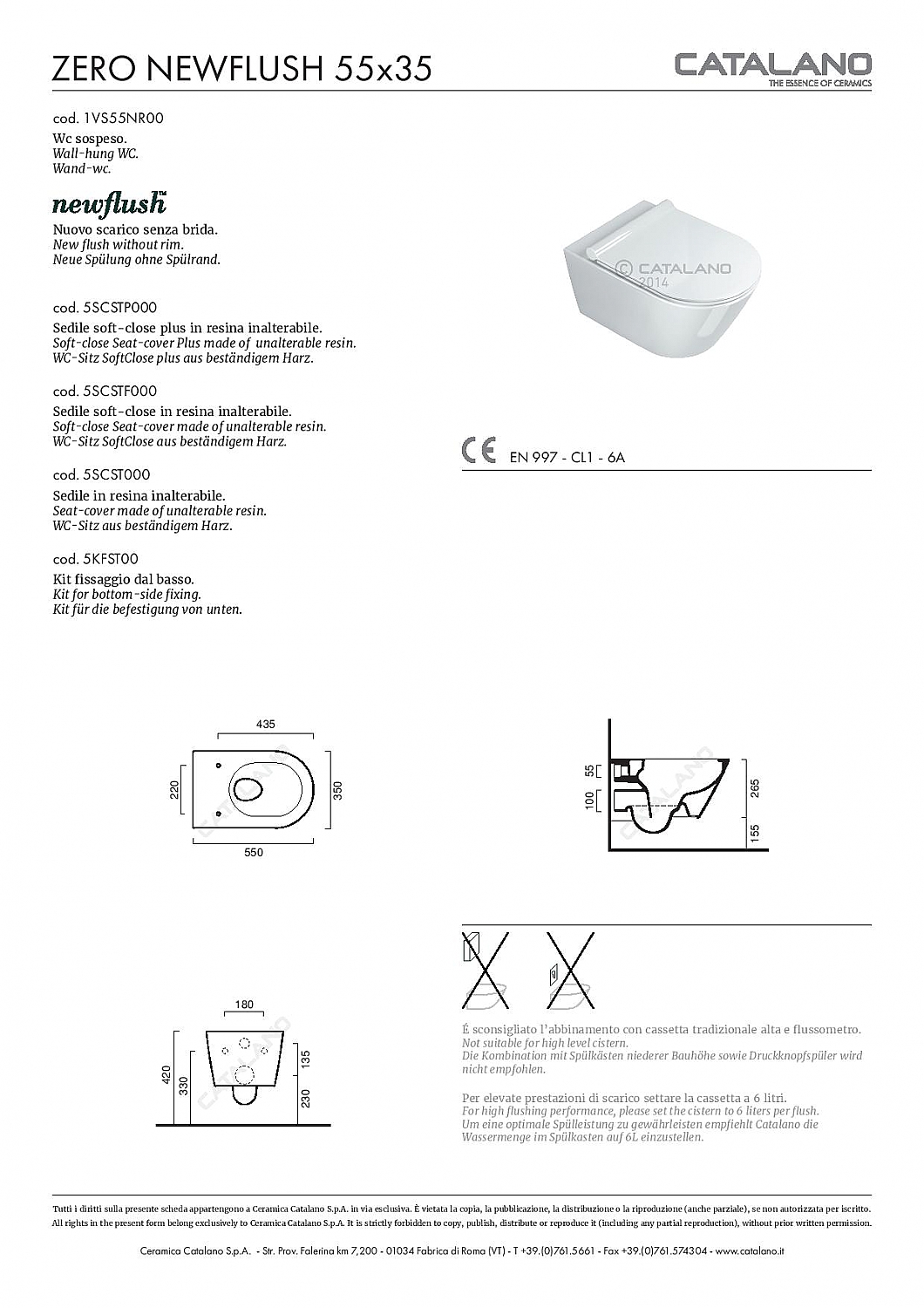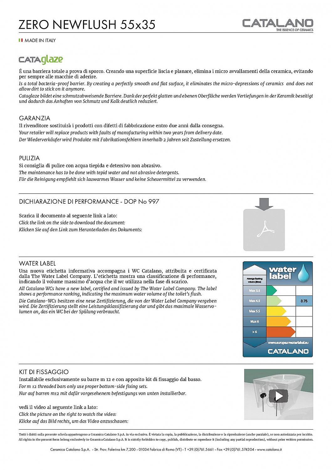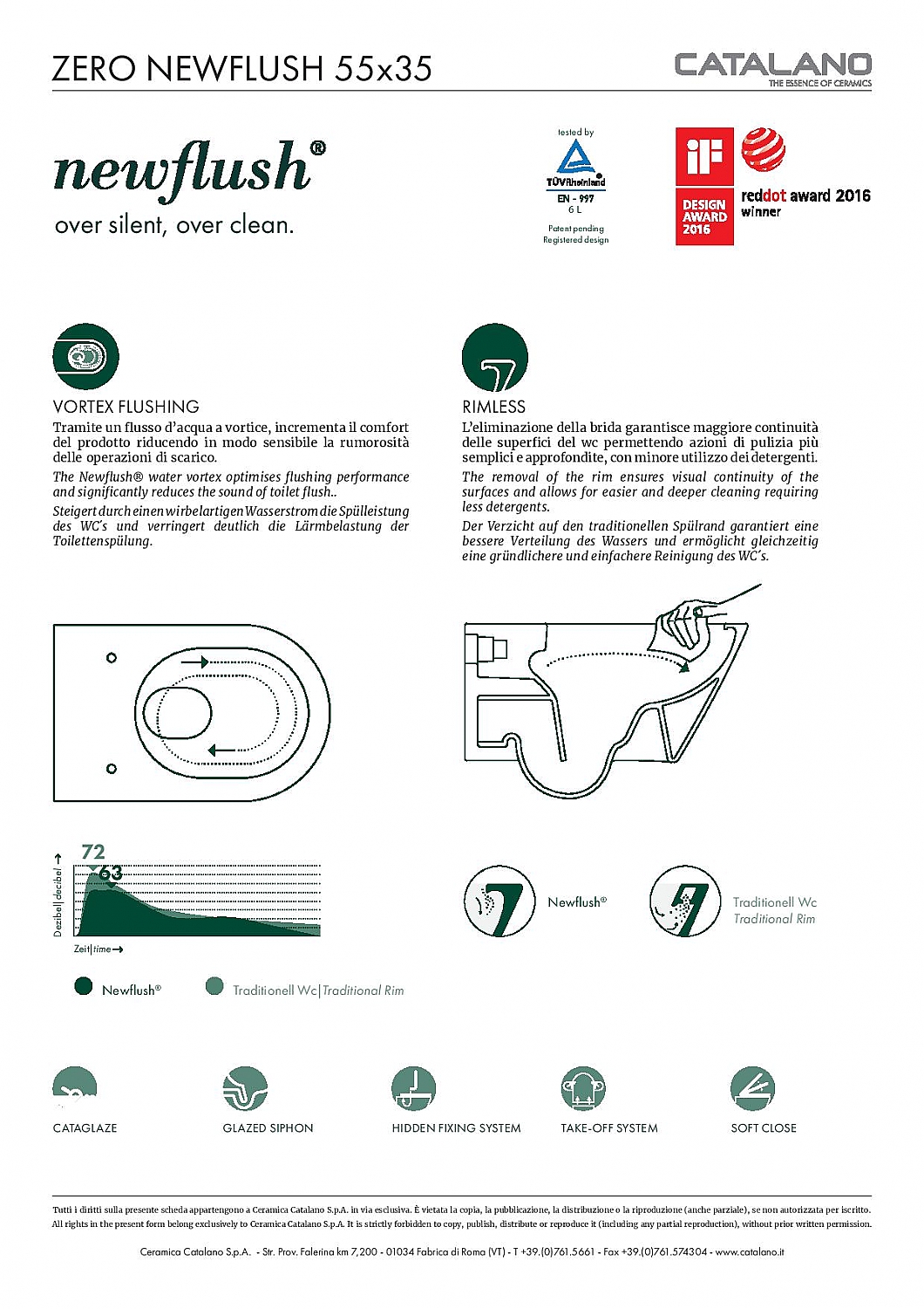 Alle producten van Catalano zijn voorzien van Cataglaze. Andere merken dompelen de toestellen in een beschermingslaag. Catalano bakt de filmlaag mee op 1250 graden waardoor de filmlaag die het keramiek beschermt tegen vuil en dat het wandcloset er altijd mooi uit blijft zien!