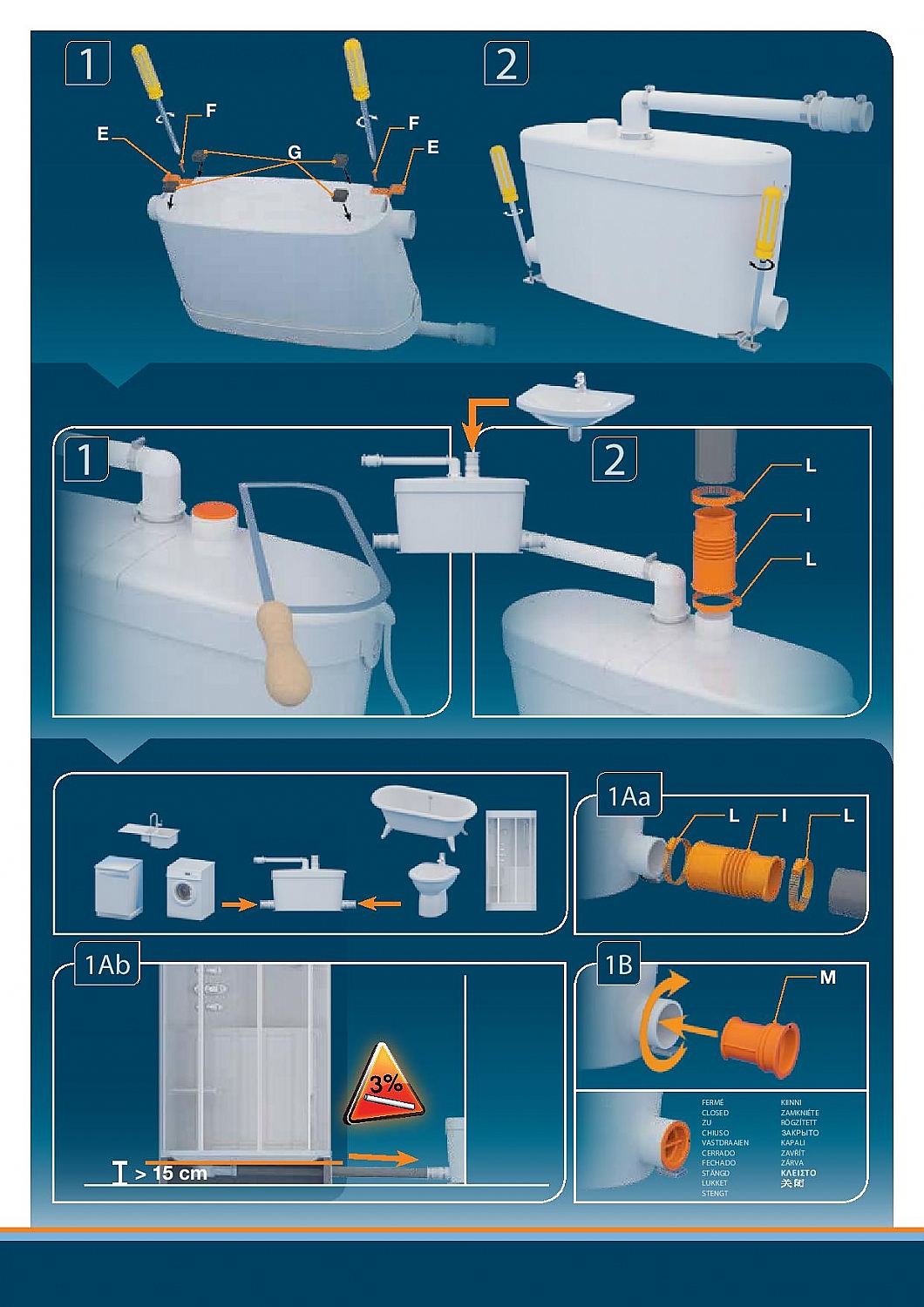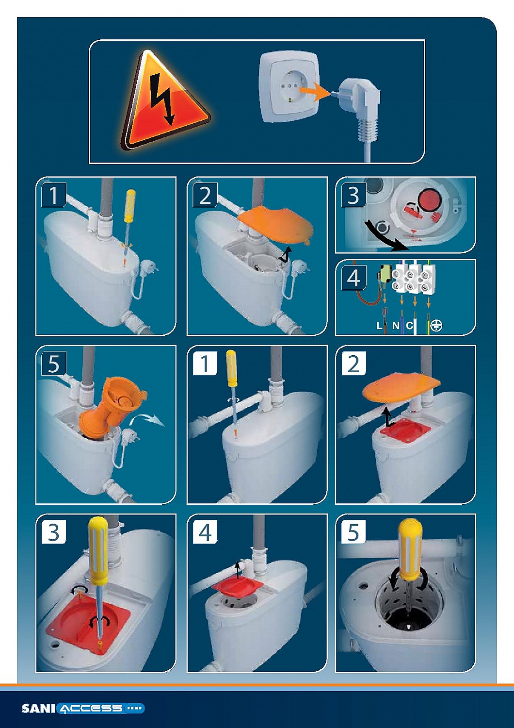 De Saniacces Pump met een modern design, voor het verpompen van afvalwater tot 75ºC van douche, wastafel/fontein, bad en/of (vaat-)wasmachine met een zeer stille werking. Toegang tot de Saniacces Pump wordt verkregen door middel van twee afneembare deksels aan de bovenzijde. Dus mocht er onverhoopt een defect optreden dan is de bedrijfszekerheid is gegarandeerd, en is de Saniacces Pump dus ideaal voor een bed & breakfast, kantoor, praktijk of salon aan huis.