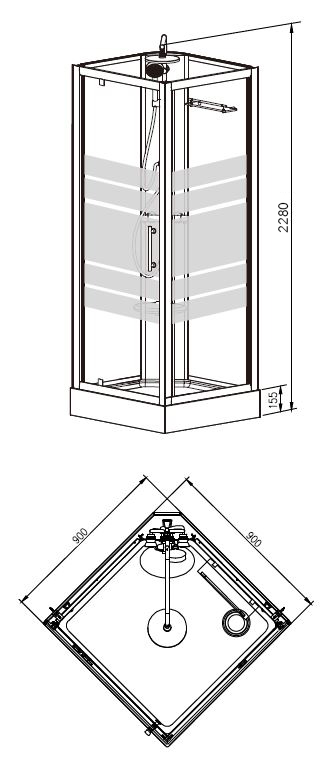 - Hoogte douchebak: 15.5 cm