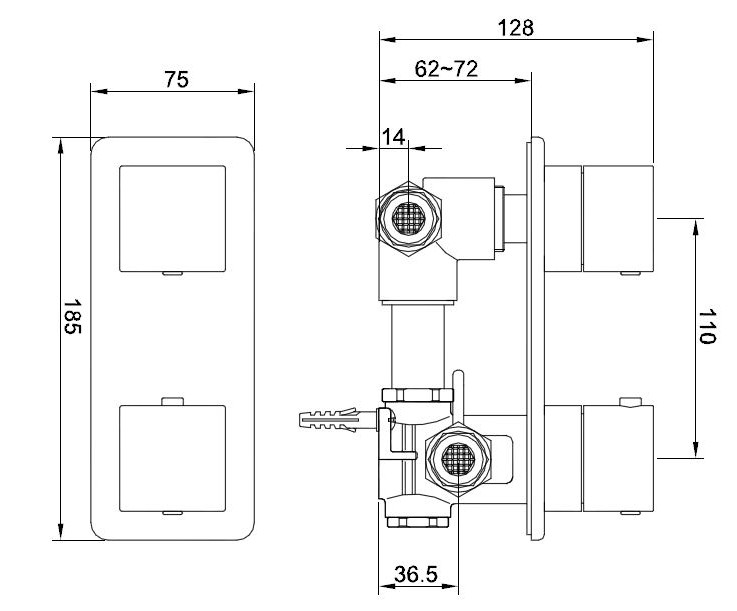 - Rombo inbouw 2-wegs douchethermostaat rond chroom