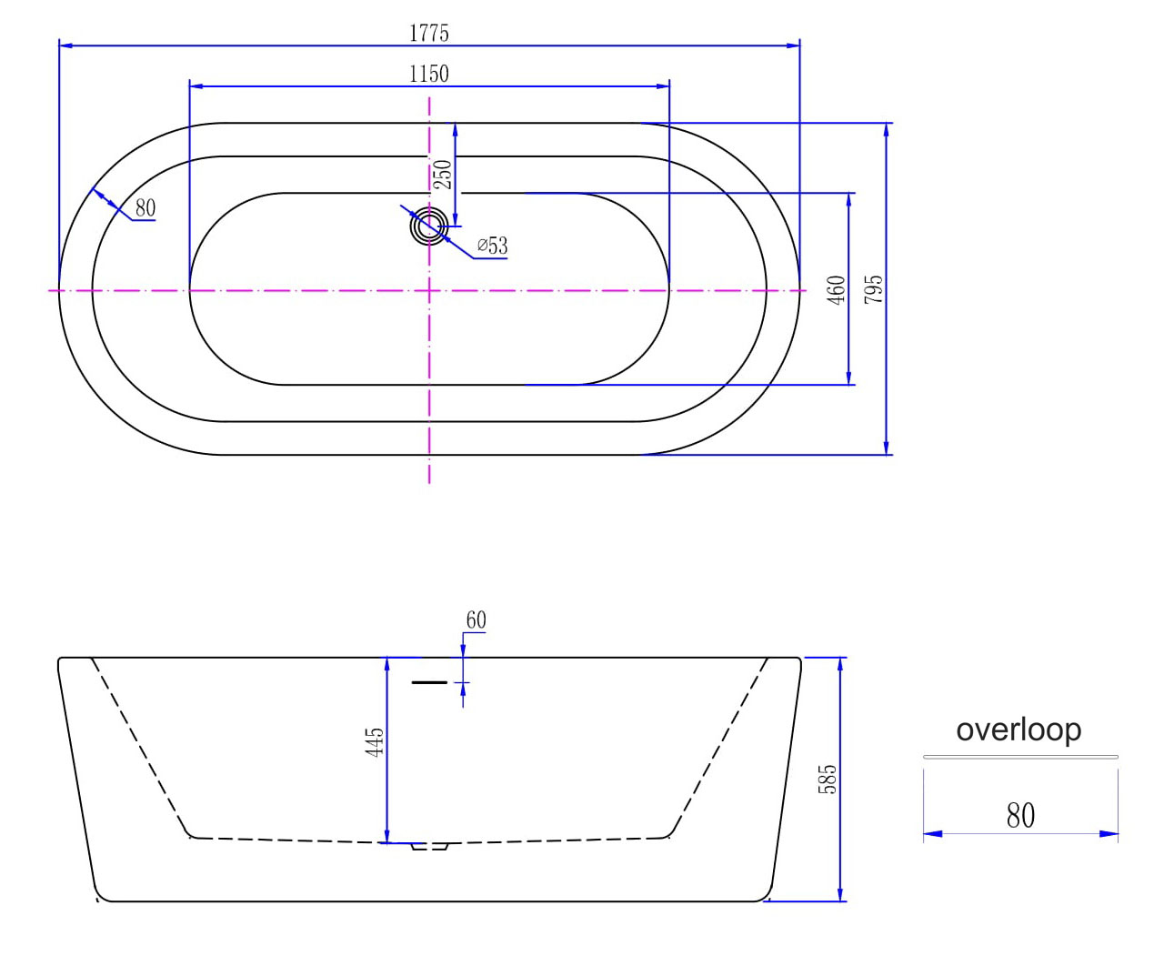 - inclusief chrome waste en overloop