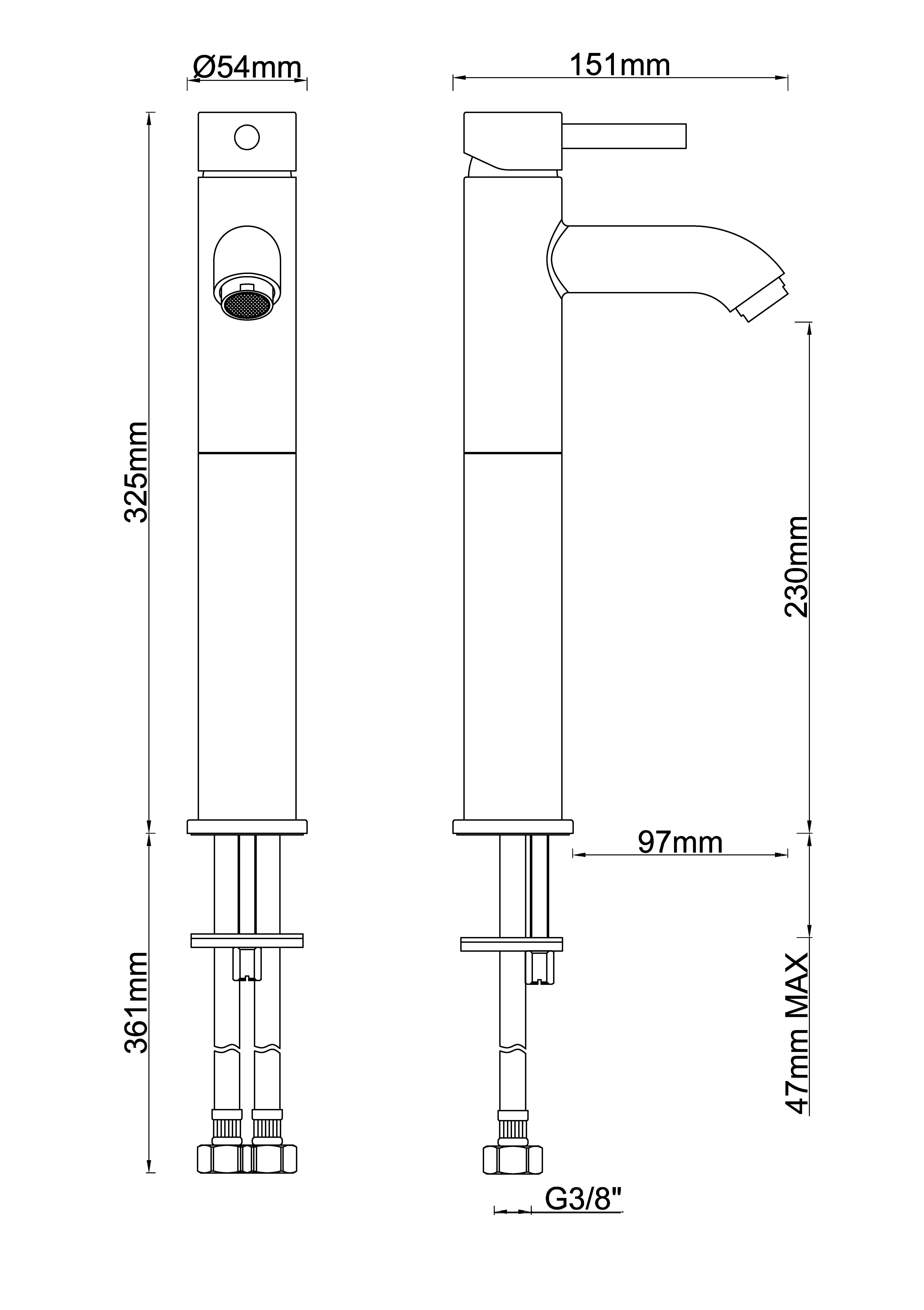Deze kraan is geschikt voor montage in 1 kraangat en wordt aangesloten met standaard flexibele slangen.