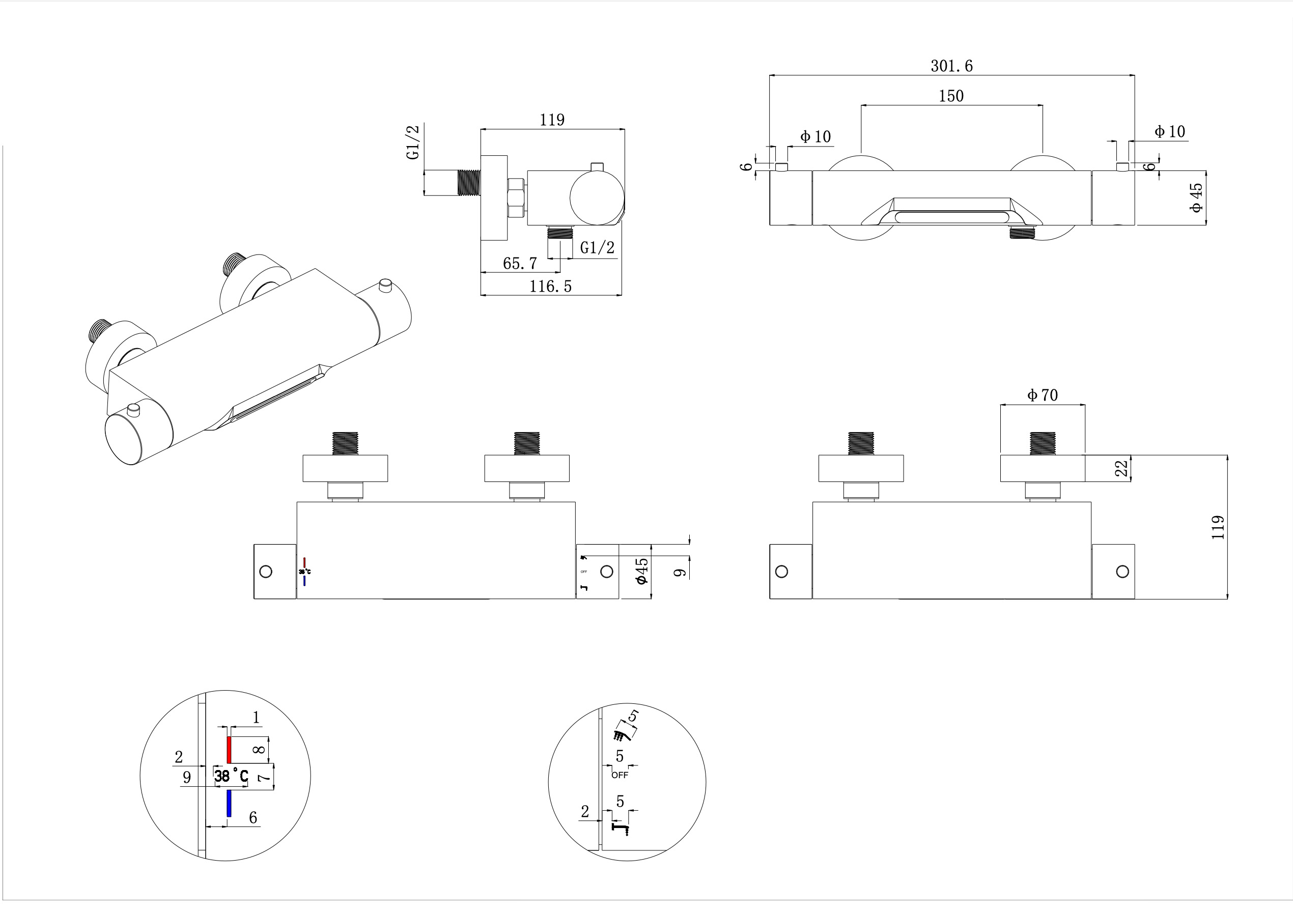 - Geschikt voor badkamers met opbouwmuuraansluiting