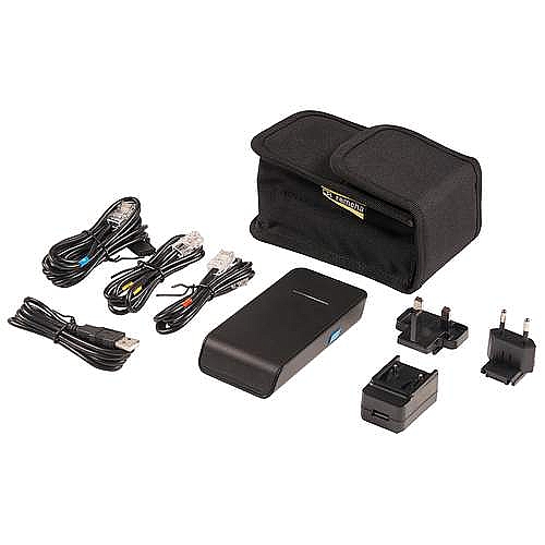 De levering is compleet opgezet voor servicemonteurs en installateurs. Je krijgt meerdere aansluitkabels mee voor verschillende toestelseries, plus een adapter en USB-kabel om de module op te laden of bedraad te gebruiken.