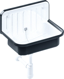 Alape uitstortgootsteen, plaatstaal, wit, (bxdxh) 510x330x165mm, 1 spoelbakken, met stootrand, met verhoogde rugwand, overig, met bevestigingsmateriaal, overloop, met aardingsvoorziening, diameter afvoerplug 42mm, met afvoerplug, bicolor: zwarte buitenzij